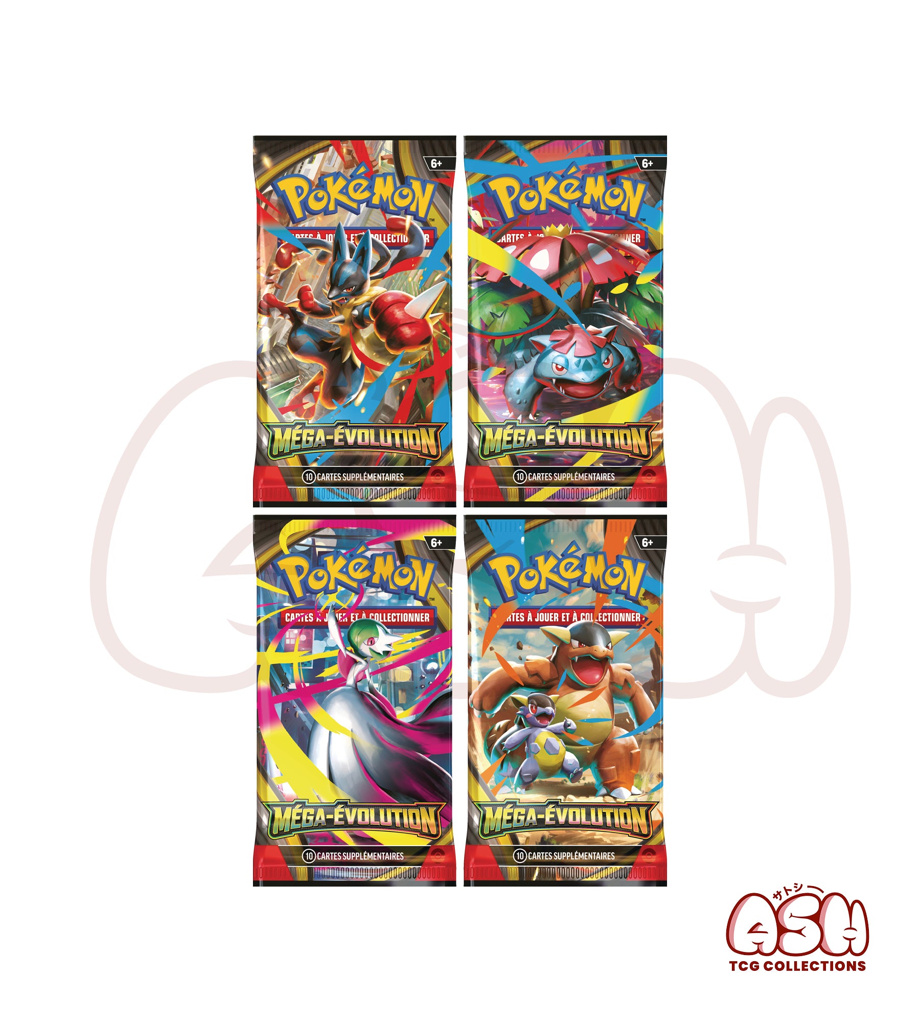 Ces boosters mettent en avant les Pokémon-ex Méga-Évolution, capables de déchaîner des attaques dévastatrices et de bouleverser le cours de vos combats. Faites appel à la force indomptable de Méga-Lucario-ex, à l’élégance mystique de Méga-Gardevoir-ex, et à bien d’autres Pokémon prêts à tout risquer pour vous mener à la victoire.